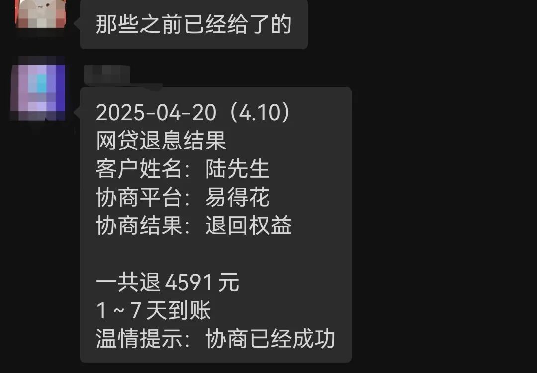 而当前相对比较好退费的一些网贷平台有:你我贷、金瀛分期、易得花、桔多多、洋钱罐、好分期。无论是这些平台的黑卡,或者是超过24%的利息,还有一些权益费,担保费都是可以退回的。 所以再次强调如果有退费的平台,那么一定不要注销! 那如果是不需要退费的平台,怎么去注销呢? 首先大部分网贷平台都有它自身的APP,登录APP账户里面有注销账户的选项。 如:花呗—登录支付宝APP、我的、花呗、右上角、关闭花呗、信用购。 (至于其他的平台也是类似的操作,具体对应的平台怎么去注销账户以前的文章中也有详细介绍噢) 如果实在不知道的也可以通过APP的在线客服窗口转人工,表达自己的诉求,客服也会告知你注销的步骤。 2、网贷协商 网贷逾期之后无论是投诉,催收问题,还是协商还款都可以拨打平台客服热线。 网贷的协商政策主要可以分为三大类。 一是延期:目前可以协商的平台有安逸花、花呗、借呗。安逸花的话主要是延期1-2年,而花借呗的话主要是延期半年-1年。而如果是花借呗想要协商的,这边还是要建议提早处理,因为政策随时都有变动,最近延期政策也是刚刚才恢复。 二是停催或缓催:没有固定的延期或者分期政策的网贷平台,一般可以做停催或者是缓催。部分平台可以做到1-3个月的停催(比如:桔多多、金瀛分期、羊小咩、分期乐、你我贷…等)。而大部分平台即使不能停催,也可以做缓催。主要就是逾期之后,对于本人的催收频次降频并且屏蔽第三方。 三是分期:极少的网贷平台可以进行分期,比如我们常见的有海尔消费金融,招联金融,易得花,花借呗等,都是可以进行分期的。从而对于还款压力比较大的,也可以综合自己的情况,协商的时候选择适合自己的方案。而网贷的分期政策并不像银行卡一样可以分60期。常见的话一般都是24或者是36期。 3、网贷退费 对于网贷退息怎么去弄?其实退费不难,主要的是细节问题怎么去把控。 今天主要以易得花的退费跟大家讲一下。 “易得花”能退的费用主要源于前两期违规的担保费。但是虽然只有担保费,但这些费用也是不低的。例如大家可以看一下一个粉丝前两期的服务费: 大家认真算了之后就会发现每一笔的借款前两期的费用远远超过了后面几期,然而以这个粉丝为例,总共借款2万左右,一共分为四笔,但其担保费合计加起来将近4000多。而这些费用都是平台违规搭载的担保费都是可以退回的。 而要如何去操作呢? 1、首先主动致电400-0802-832客服电话,表明个人诉求 2、其次对于提前所算好的担保费,跟他们详细说明并且要求退回 3、最后让客户进行登记反馈,等待回电 (回电之后所给到的退费结果自己不是很满意之后,可以强硬明自己的诉求要求再次反馈,就这样反复多拉扯几次)。 但是虽然方法都差不多,但其实每个人用起来差别还是很大的。因为每个人的经验也不一样,协商的沟通方式也不一样,所以最后的结果往往专业的和非专业的差别还是挺大的。因此如果有对应的需要,可以随时咨询噢。 其实说了那么多之后给我最大的感触就是不到非不得已,希望大家尽量不要借网贷平台的欠款,因为它处理起来相对来说没有那么人性化。因为它更像一个无底洞一样,只会让你越陷越深。因此无论是借款还是还款,大家都要根据自己的实际情况,慎重决定,慎重思考··········